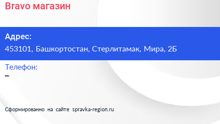 Bravo, магазин по адресу 453101, Башкортостан, Стерлитамак, Мира, 2Б в дальнейшем Организация, размещена в следующих категориях: