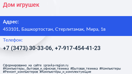 Дом игрушек по адресу 453101, Башкортостан, Стерлитамак, Мира, 1в в дальнейшем Организация, размещена в следующих категориях: