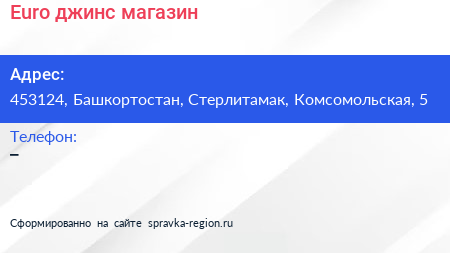Euro джинс, магазин по адресу 453124, Башкортостан, Стерлитамак, Комсомольская, 5 в дальнейшем Организация, размещена в следующих категориях: