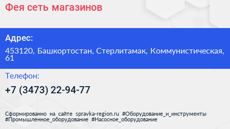 Фея, сеть магазинов по адресу 453120, Башкортостан, Стерлитамак, Коммунистическая, 61 в дальнейшем Организация, размещена в следующих категориях: