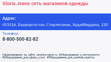 Gloria Jeans, сеть магазинов одежды по адресу 453116, Башкортостан, Стерлитамак, Худайбердина, 120 в дальнейшем Организация, размещена в следующих категориях:
