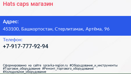 Hats&caps, магазин по адресу 453100, Башкортостан, Стерлитамак, Артёма, 96 в дальнейшем Организация, размещена в следующих категориях: