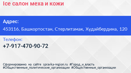 Ice, салон меха и кожи по адресу 453116, Башкортостан, Стерлитамак, Худайбердина, 120 в дальнейшем Организация, размещена в следующих категориях: