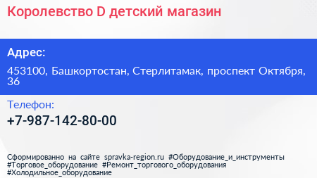 Королевство D, детский магазин по адресу 453100, Башкортостан, Стерлитамак, проспект Октября, 36 в дальнейшем Организация, размещена в следующих категориях: