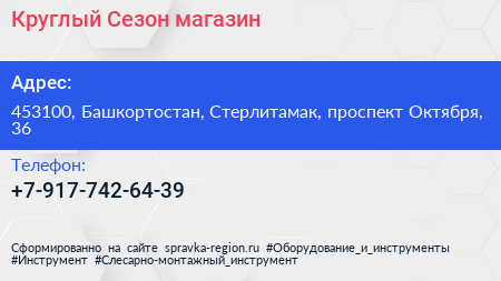 Круглый Сезон, магазин по адресу 453100, Башкортостан, Стерлитамак, проспект Октября, 36 в дальнейшем Организация, размещена в следующих категориях: