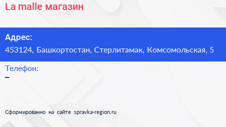 La malle, магазин по адресу 453124, Башкортостан, Стерлитамак, Комсомольская, 5 в дальнейшем Организация, размещена в следующих категориях: