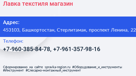 Лавка текстиля, магазин по адресу 453103, Башкортостан, Стерлитамак, проспект Ленина, 22 в дальнейшем Организация, размещена в следующих категориях: