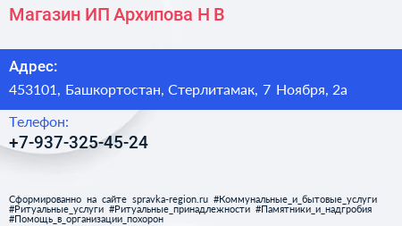 Магазин, ИП Архипова Н.В. по адресу 453101, Башкортостан, Стерлитамак, 7 Ноября, 2а в дальнейшем Организация, размещена в следующих категориях: