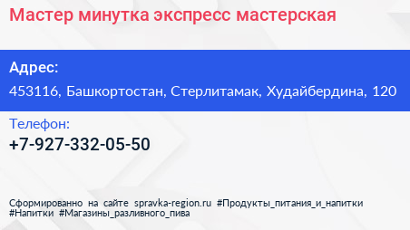 Мастер минутка, экспресс-мастерская по адресу 453116, Башкортостан, Стерлитамак, Худайбердина, 120 в дальнейшем Организация, размещена в следующих категориях: