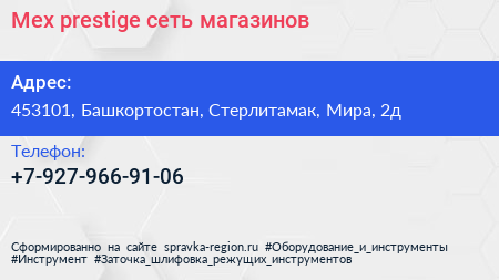 Mex prestige, сеть магазинов по адресу 453101, Башкортостан, Стерлитамак, Мира, 2д в дальнейшем Организация, размещена в следующих категориях: