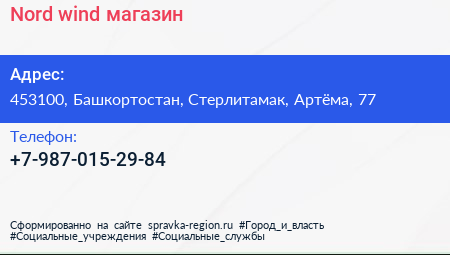 Nord wind, магазин по адресу 453100, Башкортостан, Стерлитамак, Артёма, 77 в дальнейшем Организация, размещена в следующих категориях: