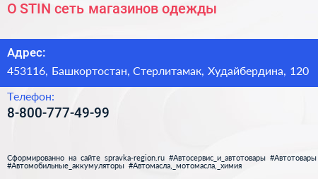O`STIN, сеть магазинов одежды по адресу 453116, Башкортостан, Стерлитамак, Худайбердина, 120 в дальнейшем Организация, размещена в следующих категориях: