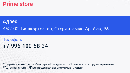 Prime store по адресу 453100, Башкортостан, Стерлитамак, Артёма, 96 в дальнейшем Организация, размещена в следующих категориях: