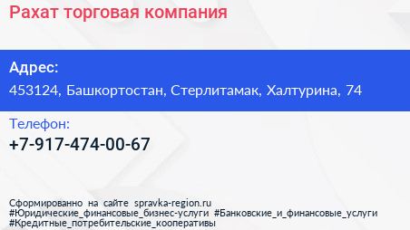 Рахат, торговая компания по адресу 453124, Башкортостан, Стерлитамак, Халтурина, 74 в дальнейшем Организация, размещена в следующих категориях: