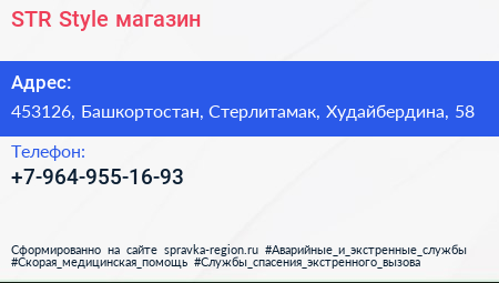 STR Style, магазин по адресу 453126, Башкортостан, Стерлитамак, Худайбердина, 58 в дальнейшем Организация, размещена в следующих категориях: