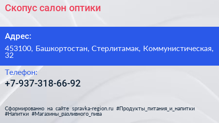 Скопус, салон оптики по адресу 453100, Башкортостан, Стерлитамак, Коммунистическая, 32 в дальнейшем Организация, размещена в следующих категориях: