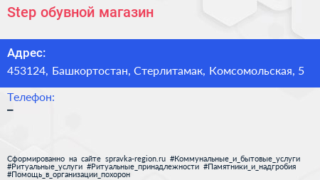 Step, обувной магазин по адресу 453124, Башкортостан, Стерлитамак, Комсомольская, 5 в дальнейшем Организация, размещена в следующих категориях:
