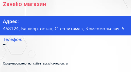 Zavelio, магазин по адресу 453124, Башкортостан, Стерлитамак, Комсомольская, 5 в дальнейшем Организация, размещена в следующих категориях: