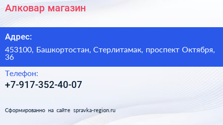 Алковар, магазин по адресу 453100, Башкортостан, Стерлитамак, проспект Октября, 36 в дальнейшем Организация, размещена в следующих категориях: