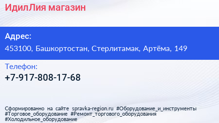 ИдилЛия, магазин по адресу 453100, Башкортостан, Стерлитамак, Артёма, 149 в дальнейшем Организация, размещена в следующих категориях: