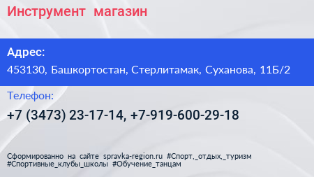 Инструмент+, магазин по адресу 453130, Башкортостан, Стерлитамак, Суханова, 11Б/2 в дальнейшем Организация, размещена в следующих категориях: