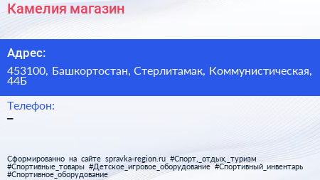 Камелия, магазин по адресу 453100, Башкортостан, Стерлитамак, Коммунистическая, 44Б в дальнейшем Организация, размещена в следующих категориях: