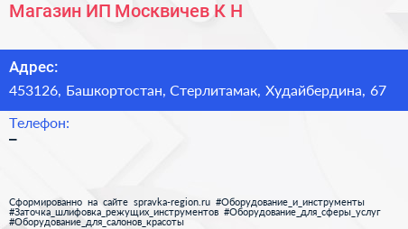 Магазин, ИП Москвичев К.Н. по адресу 453126, Башкортостан, Стерлитамак, Худайбердина, 67 в дальнейшем Организация, размещена в следующих категориях: