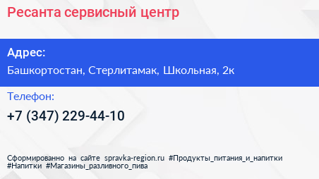 Ресанта, сервисный центр по адресу Башкортостан, Стерлитамак, Школьная, 2к в дальнейшем Организация, размещена в следующих категориях: