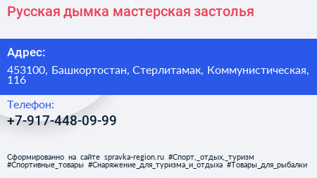 Русская дымка, мастерская застолья по адресу 453100, Башкортостан, Стерлитамак, Коммунистическая, 116 в дальнейшем Организация, размещена в следующих категориях: