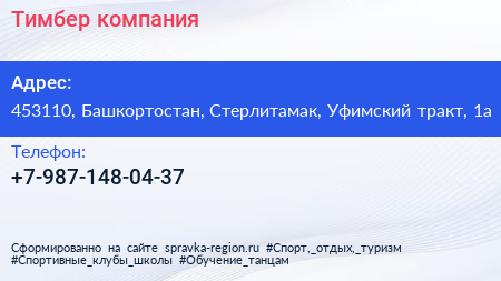 Тимбер, компания по адресу 453110, Башкортостан, Стерлитамак, Уфимский тракт, 1а в дальнейшем Организация, размещена в следующих категориях: