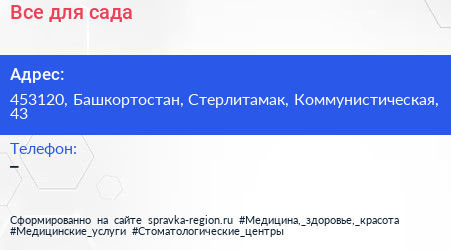 Все для сада по адресу 453120, Башкортостан, Стерлитамак, Коммунистическая, 43 в дальнейшем Организация, размещена в следующих категориях: