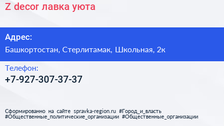 Z.deсor, лавка уюта по адресу Башкортостан, Стерлитамак, Школьная, 2к в дальнейшем Организация, размещена в следующих категориях: