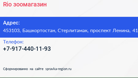 Rio, зоомагазин по адресу 453103, Башкортостан, Стерлитамак, проспект Ленина, 41 в дальнейшем Организация, размещена в следующих категориях: