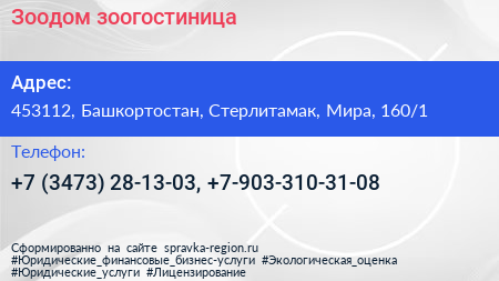 Зоодом, зоогостиница по адресу 453112, Башкортостан, Стерлитамак, Мира, 160/1 в дальнейшем Организация, размещена в следующих категориях: