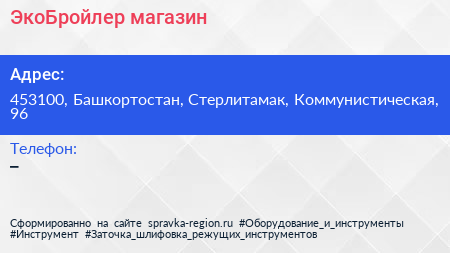 ЭкоБройлер, магазин по адресу 453100, Башкортостан, Стерлитамак, Коммунистическая, 96 в дальнейшем Организация, размещена в следующих категориях: