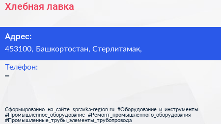 Хлебная лавка по адресу 453100, Башкортостан, Стерлитамак, в дальнейшем Организация, размещена в следующих категориях: