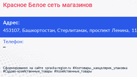 Красное & Белое, сеть магазинов по адресу 453107, Башкортостан, Стерлитамак, проспект Ленина, 11 в дальнейшем Организация, размещена в следующих категориях:
