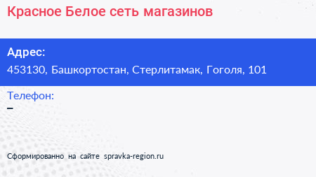 Красное & Белое, сеть магазинов по адресу 453130, Башкортостан, Стерлитамак, Гоголя, 101 в дальнейшем Организация, размещена в следующих категориях: