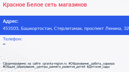 Красное & Белое, сеть магазинов по адресу 453103, Башкортостан, Стерлитамак, проспект Ленина, 32 в дальнейшем Организация, размещена в следующих категориях: