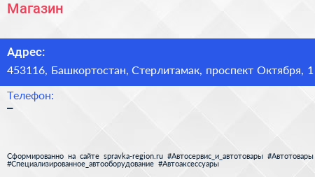 Магазин по адресу 453116, Башкортостан, Стерлитамак, проспект Октября, 1 в дальнейшем Организация, размещена в следующих категориях: