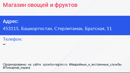 Магазин овощей и фруктов по адресу 453115, Башкортостан, Стерлитамак, Братская, 11 в дальнейшем Организация, размещена в следующих категориях:
