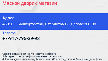 Мясной дворик, магазин по адресу 453103, Башкортостан, Стерлитамак, Деповская, 38 в дальнейшем Организация, размещена в следующих категориях: