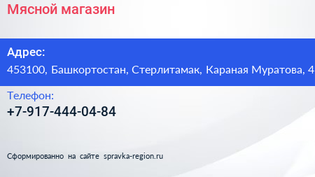 Мясной, магазин по адресу 453100, Башкортостан, Стерлитамак, Караная Муратова, 4 в дальнейшем Организация, размещена в следующих категориях: