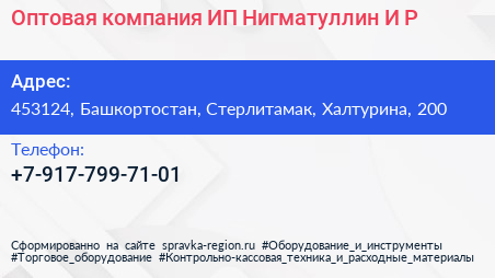 Оптовая компания, ИП Нигматуллин И.Р. по адресу 453124, Башкортостан, Стерлитамак, Халтурина, 200 в дальнейшем Организация, размещена в следующих категориях: