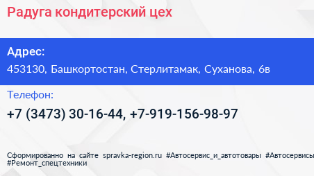 Радуга, кондитерский цех по адресу 453130, Башкортостан, Стерлитамак, Суханова, 6в в дальнейшем Организация, размещена в следующих категориях: