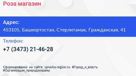 Роза, магазин по адресу 453105, Башкортостан, Стерлитамак, Гражданская, 41 в дальнейшем Организация, размещена в следующих категориях: