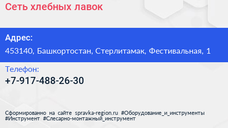 Сеть хлебных лавок по адресу 453140, Башкортостан, Стерлитамак, Фестивальная, 1 в дальнейшем Организация, размещена в следующих категориях: