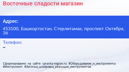 Восточные сладости, магазин по адресу 453100, Башкортостан, Стерлитамак, проспект Октября, 36 в дальнейшем Организация, размещена в следующих категориях: