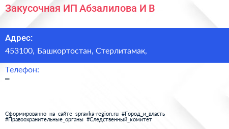 Закусочная, ИП Абзалилова И.В. по адресу 453100, Башкортостан, Стерлитамак, в дальнейшем Организация, размещена в следующих категориях: