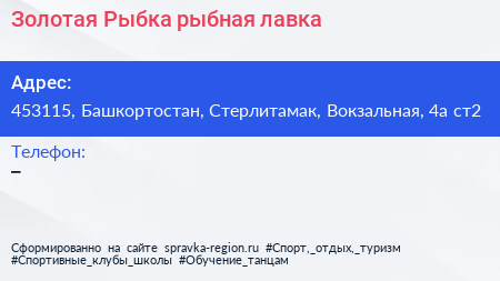 Золотая Рыбка, рыбная лавка по адресу 453115, Башкортостан, Стерлитамак, Вокзальная, 4а ст2 в дальнейшем Организация, размещена в следующих категориях:
